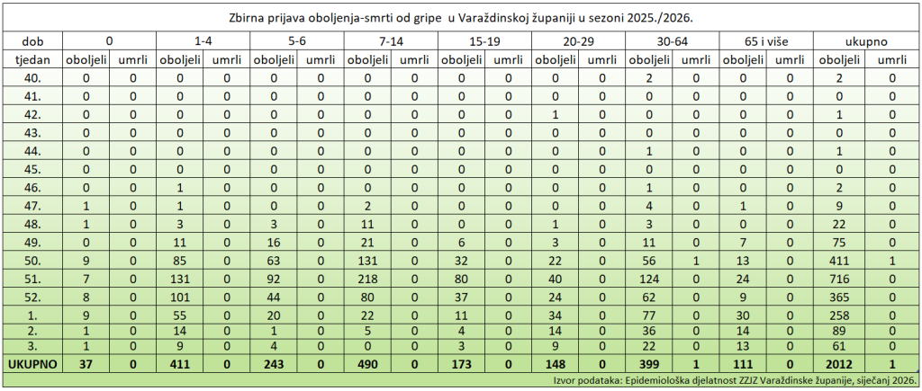 U Varaždinskoj županiji od početka prijavljivanja gripe 22.12.2010. do 23.02.2011.