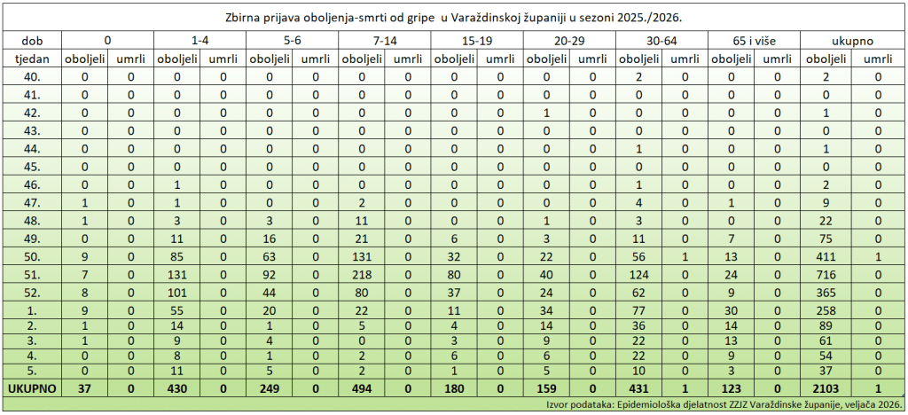 U Varaždinskoj županiji od početka prijavljivanja gripe 22.12.2010. do 23.02.2011.